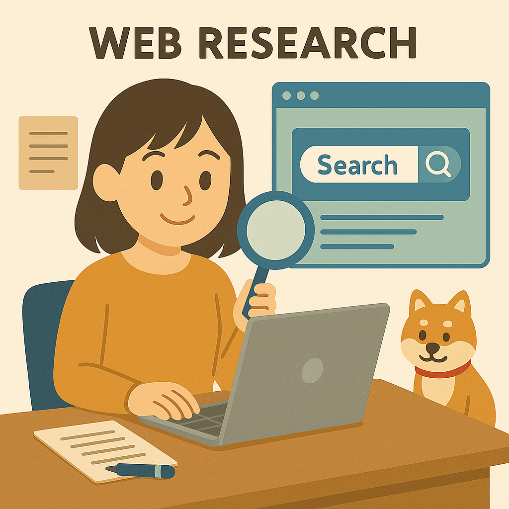 - 基本内容:依頼者の代わりにネット上の情報を集め、出典付きで整理・要約して提出(例:競合比較、料金一覧、店舗リスト、統計データの出所確認など)。