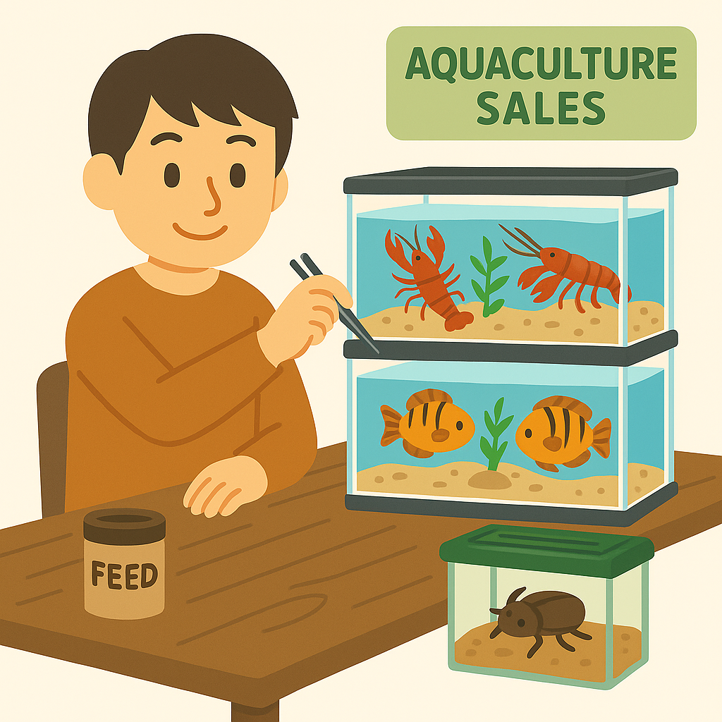 - 基本的な内容・目的:丈夫な種を絞り、小ロットで繁殖→安定供給→継続販売。生体だけでなく餌昆虫・活餌・水草・副資材も扱うと収益が安定。