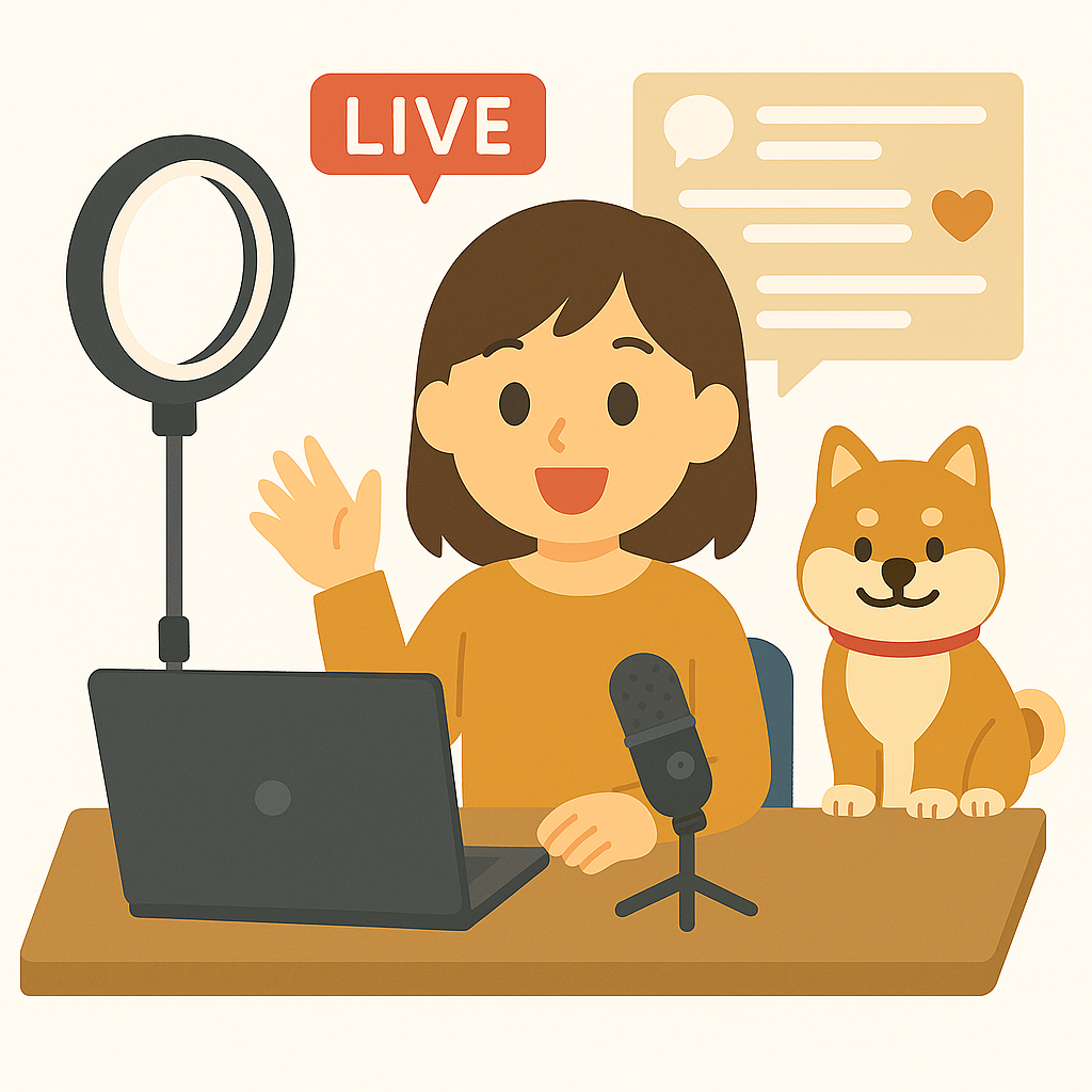 顔出しは不安、機材も高そう——それでもスマホ1台+無料アプリで今日から始められるのがライブ配信。雑談・作業BGM・学びの共有など、40代の落ち着き・経験談・安心感がそのまま強みになります。まずは小さくテスト→続け方を設計しましょう。