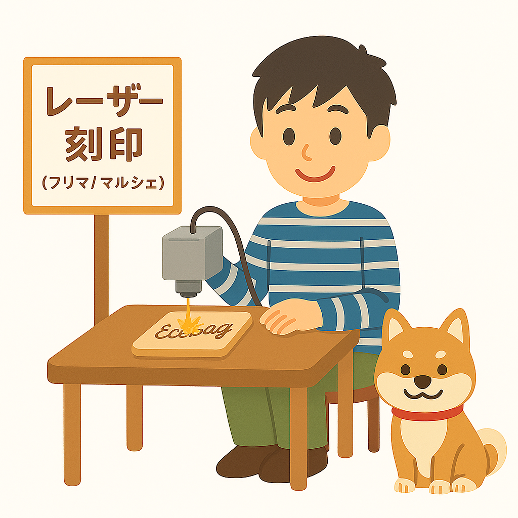 レーザー刻印サービス(フリマ/マルシェ版)は、サブスクなしでも即売+名入れ追加でしっかり売上を作れます。