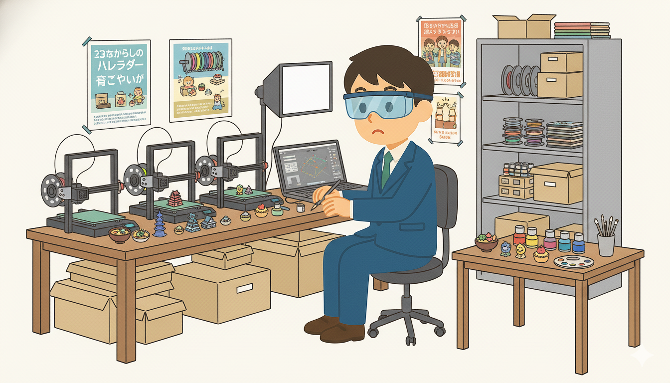 地域の名産品のフィギュア作成・販売(3Dプリント)は、“スキルも貯金もないけれど動き出したい”40代に向く小ロット×地元コラボの副業です。