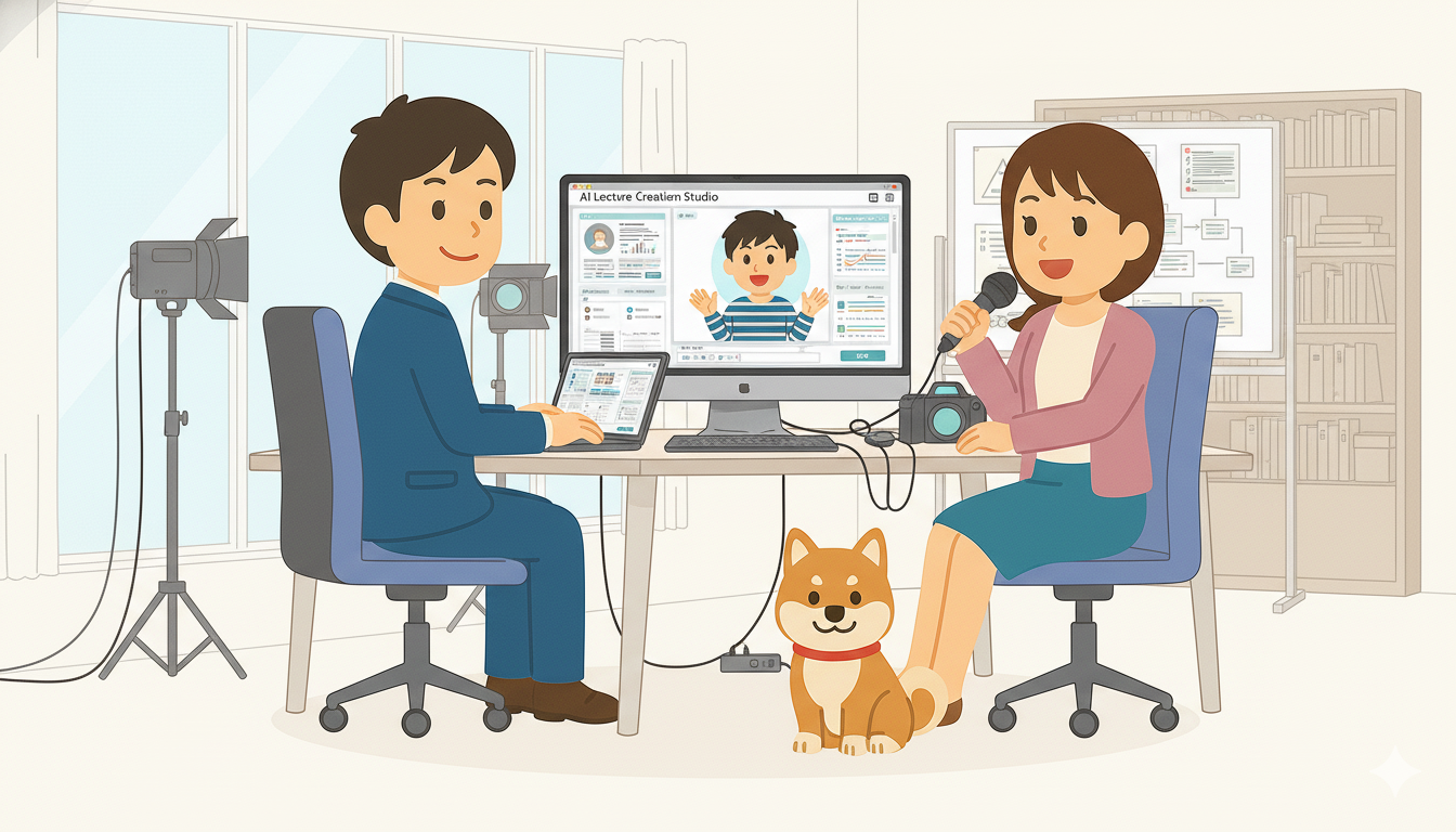 対面の説明を動画に置き換えるだけで、「同じ話を何度もしなくていい」という価値が生まれます。AIスライド生成+音声合成+字幕自動化を組み合わせれば、難しい撮影や高価な機材なしでも講義動画を量産可能。まずは短い1本から、小さく始めて育てられます。
